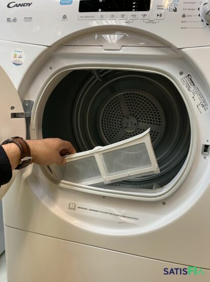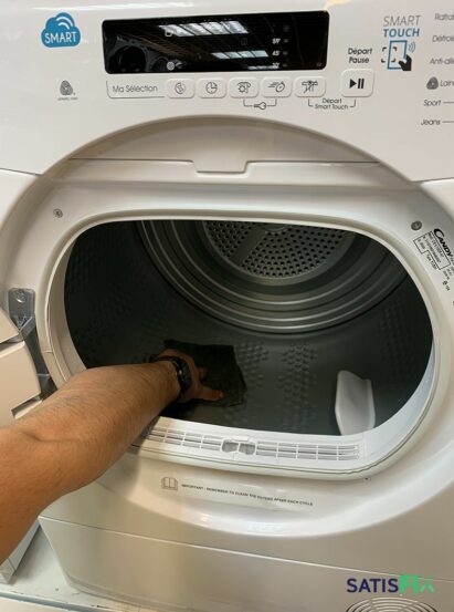 Le filtre du sèche-linge a pour fonction de récupérer toutes les petites impuretés présentes sur les vêtements telles que les poussières, les fibres cassées ou encore les poils d’animaux. Il est nécessaire de le nettoyer après chaque utilisation. Pour cela, il est possible d’enlever simplement à la main les peluches qui s’y sont accumulées. Pour certains modèles, il sera possible de passer délicatement le filtre sous l’eau tiède. Attention, sachez qu’un filtre non nettoyé multiplie les risques d’incendie ! Cette manipulation est donc indispensable à votre sécurité.