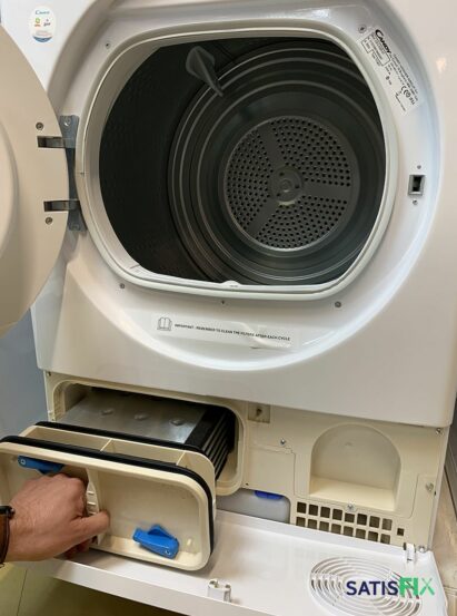 À noter : certains modèles de sèche-linge à condensation bénéficient d’un réservoir dans lequel l’eau s’accumule. Il est parfois nécessaire de le vider manuellement après une ou plusieurs utilisations. Attention, cela ne concerne pas tous les appareils ! En cas de doute, n’hésitez pas à vérifier le fonctionnement de votre sèche-linge sur la notice de votre appareil.